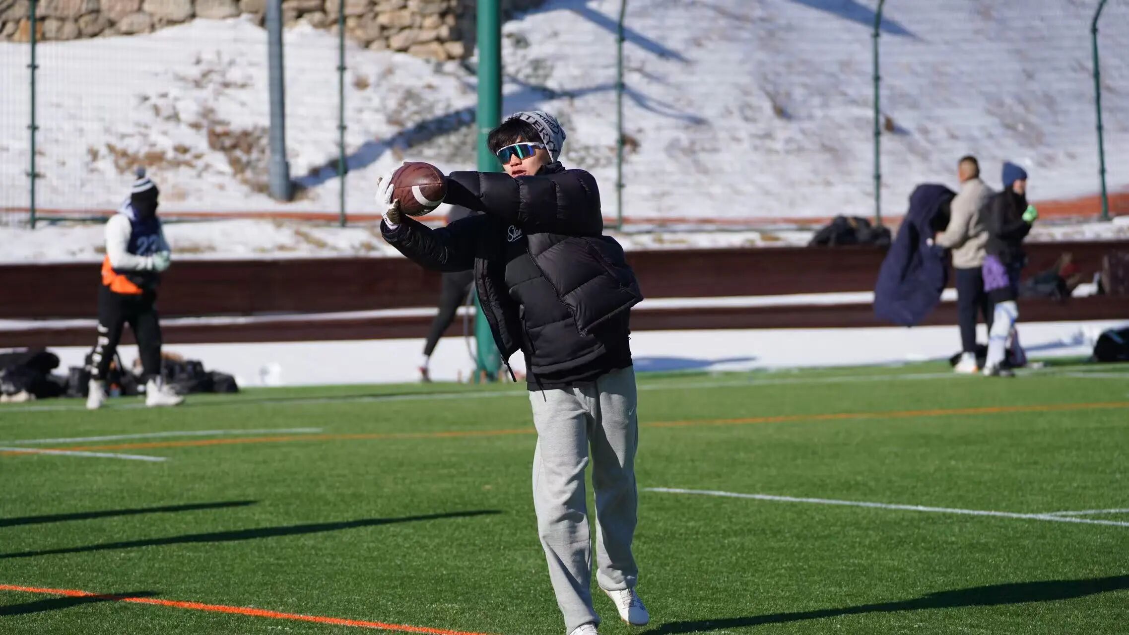 刻苦努力的他更是参加积极参加校外的训练与竞赛,在杨老师的推荐下与其他队友参加24年国庆假期在天津举行的全国青少年 U 系列腰旗橄榄球训练营与冠军赛。25年2月,他与程一翔、张格槐同学一同参加北京的腰旗橄榄球俱乐部,组队参加泰国芭提雅ready for play——亚洲最大规模腰旗橄榄球比赛,这更是中国俱乐部球队第一次参加国际的腰旗橄榄球比赛。谈及在爱迪腰旗橄榄球队的成长,武昊澎的经历是