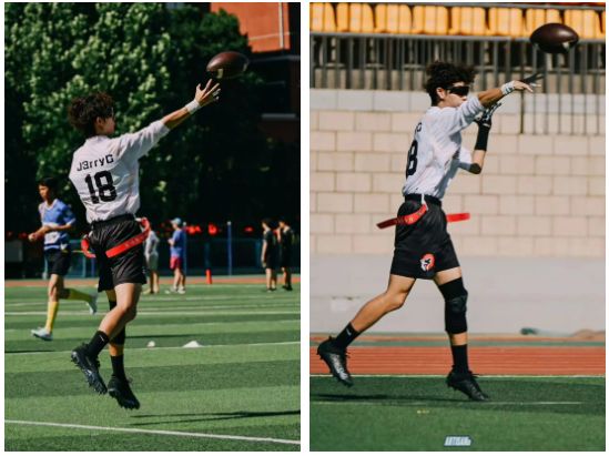 从23年转学进入爱迪后,橄榄球0基础的他选择了杨老师的腰旗橄榄球课程,进而对这项运动产生浓厚的兴趣,被选拔进入腰旗橄榄球校队。自此便从未缺席过训练,在杨老师系统的训练中,逐渐成长为优秀、专业的腰旗橄榄球运动员。