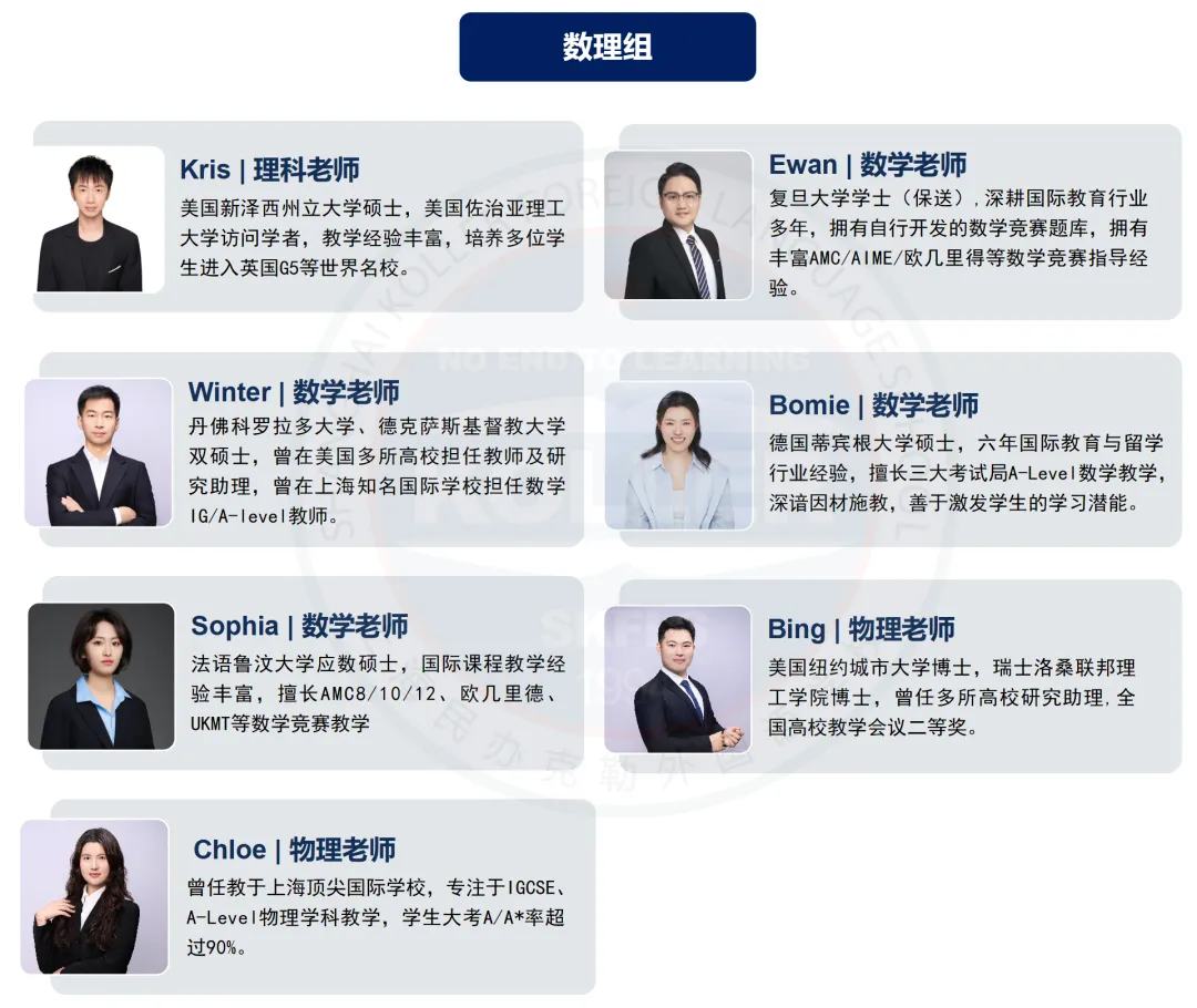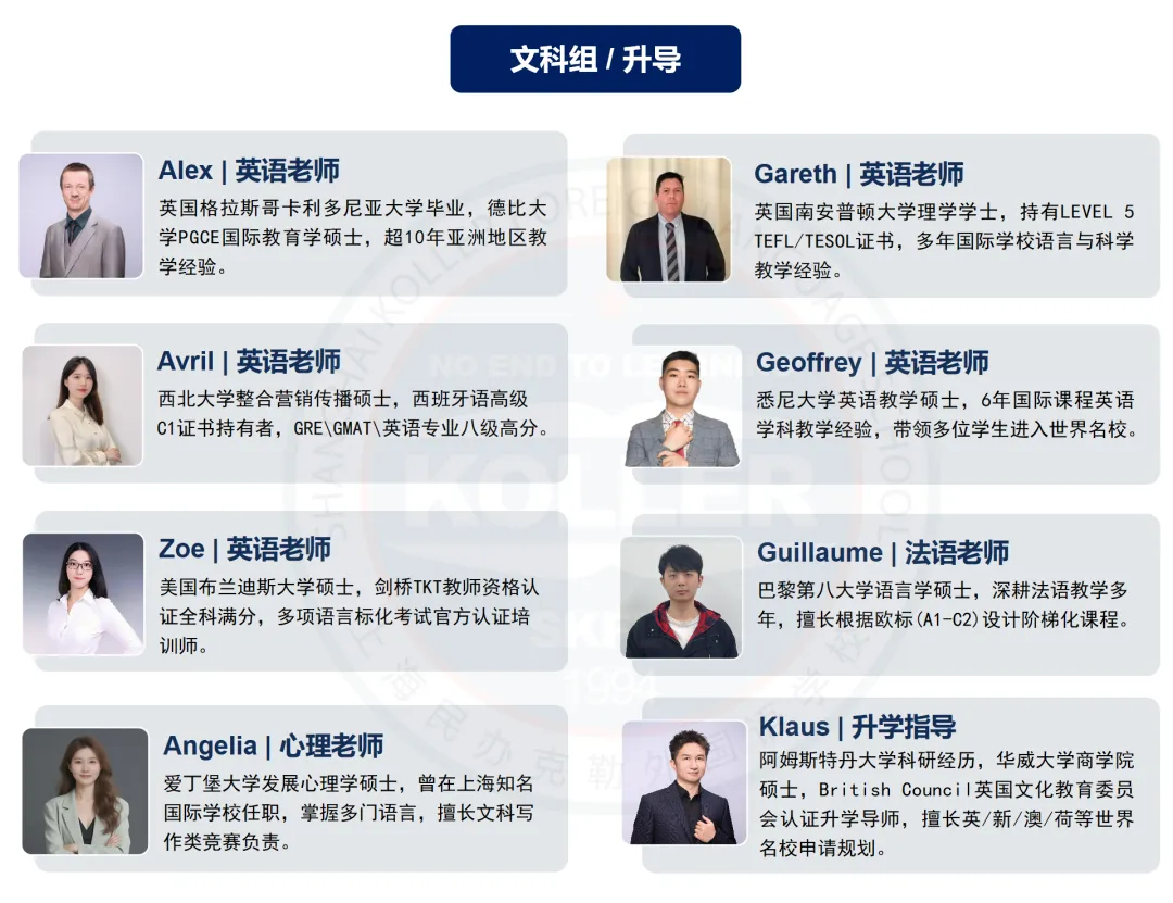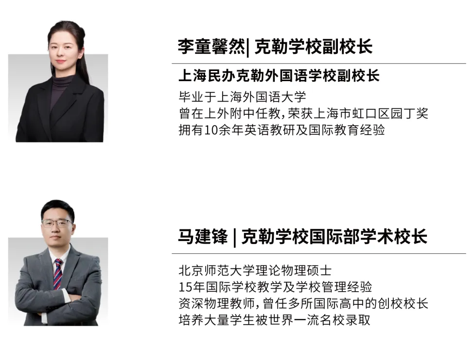 上海民办克勒外国语学校 受邀出席10月26日上海国际教育择校展 2025年10月26日(周日) 由国际在线教育频道、名校来了、创世蓝海举办的第二十五届国际教育择校咨询会在上海金茂君悦大酒店二层宴会厅隆重举办! 本次展会汇聚上海【50+】优质教育资源,涵盖上海地区优秀民办国际化学校、国际教育机构及提供国内学籍、专注高考路径的精英学府,构建了涵盖幼儿园至高中,共15年的国内、国际双轨制贯通教育体系,并延伸至国际预科及本科衔接课程,形成"国内升学+海外深造"双通道的完整升学链路。展会现场除各校独家展位外,特别设置择校专区,为家长提供幼升小至国际本科全阶段择校方案,助力适龄学子实现个性化教育路径规划。 上海国际学校择校展 10月26号周日 上海金茂君悦大酒店 学校亮点前瞻 上海民办克勒外国语学校 上海民办克勒外国语学校(原上海外国语大学第一实验学校)创建于1994年,是一所以外语、科创为特色的民办学校。学校秉承“自强、至诚、志远”的校训精神,以学生的终身全面发展为重,注重个性化培养,为国内外名校输送了大量毕业生。 上海民办克勒外国语学校国际部位于虹口区西江湾路800号,结合自身传统优势,并引入国内外的优质国际教育资源,在学术综合能力、个性升学规划、特色背景提升、全面素质拓展四大维度打造中西融合的特色A-Level课程,培养拥有全球化视野、批判性思维、创新创意能力的国际复合型人才。 目前,克勒国际部已经获得英国CAIE(授权码CX277)和牛津AQA考试局(授权码96468)授权,是英国IGCSE、A-Level课程官方学习中心和官方授权考点。同时学校也是目前虹口区唯一一所资质齐全的国际高中(民办学校办学许可证编码131010930000028)。 1 招生对象 2 开设课程 学术能力课程,专为克勒学子打造 克勒国际部的学术课程引入英国IGCSE、A-Level课程,融合CAIE、AQA、Edexcel三大考试局课程优势,根据考察方式的差异化,不同学科选择的考试局有所不同,帮助学生更好地在大考中获得高分。 升学规划课程,精准锚定升学方向 入学后配备升学指导课,通过留学课程+职业探索活动+一对一升学指导的形式,助力学生明确申请目标,迈向心仪学府。 背景提升课程,拓宽认知视野 为了进一步提高学生的升学竞争力,克勒国际部开设了一系列背提课程,涵盖科研EPQ、国际竞赛、STEM、商赛、领导力等各个方面,旨在培养学生的学术思维及解决问题能力,助力学生个性化发展。 素质提升课程,培养兴趣与创造力 克勒注重学生的全方面发展,包括艺术、体育、科技等多个领域。学校开设了OM、VEX机器人、模拟联合国等明星社团,并定期带学生参加国内外比赛,旨在培养学生的创造性思维,丰富学生的课余生活,拓宽国际视野。 3 办学优势 精品小班教学 每班5-8人,纯小班制教学,促进个性化成长与高效学习。 老牌名校底蕴 背靠上外系老牌学校,历史底蕴深厚,融合国内外的优质国际教育资源。 英国学籍通道 注册英国高尔中学学籍,拥有1+2、2+2等多样化升学路径。 市区黄金地段 虹口区黄金地段,靠近地铁3、8号线紧邻杨浦区、静安区,走读便利。 4 管理团队&师资力量 管理团队 克勒国际部的管理团队由四位校长组成,他们各司其职、协同发力,以专业能力与国际视野为国际部的发展保驾护航。克勒学校校长崔德明全面统筹国际部发展,英国高尔中学校长Mark Jones深度参与课程设计与教学监管,克勒学校副校长李童馨然与克勒国际部学术校长马建锋则共同承担教学质量与发展方向的全程把控职责。 管理团队 克勒国际部的A-Level教学团队由一群资深教师组成,骨干成员均为国内外名校硕士、博士毕业,有多年国际课程教学经验,培养了众多学生成功进入牛津大学、剑桥大学、伦敦政经、帝国理工学院、伦敦大学学院、曼彻斯特大学、香港大学等各个全球名校学习。 5 携手英国公立高尔中学 2024年5月,克勒和高尔就合作形式、课程体系、教育理念、招生要求等达成一致。高尔校长亲自来到克勒,在实地考察、确认完各项细节后正式签约,联合创办克勒国际部,开设A-Level课程体系,旨在培养拥有全球化视野、批判性思维、创新创意能力的国际复合型人才。 克勒国际部A-level学生入学后注册英国高尔中学学籍,可以选择1+2或2+2学制(第1年/第1和第2年在国内克勒学校就读,后面2年在英国高尔中学就读),享受英国公立高中绿色升学通道。 英国高尔中学概况 高尔中学创立于1825年 是英国顶级公立高中之一,也是英国教育变迁的亲历者和见证者; 全英第一批开设A-Level课程 设有近40门科目,涵盖绝大部分学生的需求; 接受全球国际生就读 教学成果卓越,A-A*比例达76%,90%以上的国际生考入罗素大学集团; 获得剑桥大学授权 开设“HE+”课程,牛剑毕业导师亲授,提供笔面试辅导、参观访校等内容。全英国仅有14所学校获得授权,是教学实力的强有力背书。 克勒国际部A-level学生入学后注册英国高尔中学学籍,可以选择1+2或2+2学制(第1年/第1和第2年在国内克勒学校就读,后面2年在英国高尔中学就读),享受英国公立高中绿色升学通道。 6 精细化管理 作息时间与课表示例 克勒融合高中汇聚了一支国际化、专业化的师资团队,致力于为学生提供高质量的教育和个性化指导。融合高中的课程由经验丰富的外籍教师与中国教师共同授课,确保学生在掌握扎实学术知识的同时,也能提升