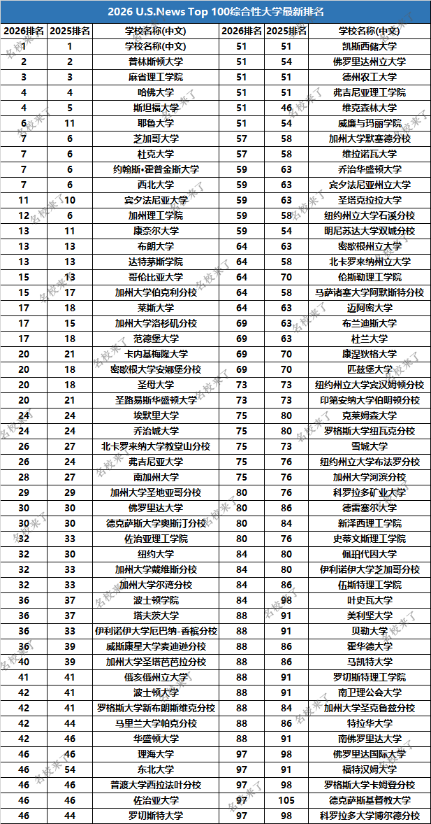 今天,2026年U.S. News美国大学排名重磅出炉!对于计划申请美国高校的同学和家长来说,U.S. News榜单是他们筛选学校的重要参考之一。今年的排名有哪些新变化?