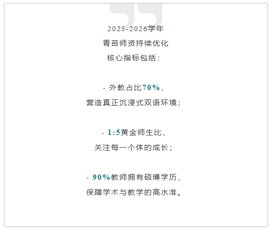 在青苗,教师不仅是知识的传授者,更是孩子成长的陪伴者和引路人。我们汇聚全球智慧,不是为了追求所谓“名校标签”,而是让每一个孩子真正拥有走向世界的底气、选择未来的权利和感受幸福的能力。