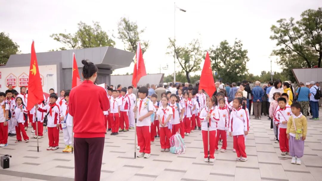 焦庄户地道战遗址纪念馆的广场上,凯博小学部学生们庄重肃立。五星红旗在头顶烈烈飘扬,红领巾在胸前点燃火种。同学们怀着敬畏与铭记之心,共同回望“九·一八”。