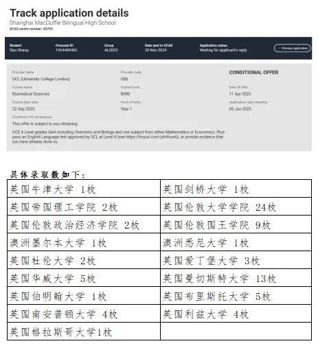 上海美达菲双语高级中学2025届学子收获230+世界名校Offer,其中包含牛津大学、剑桥大学、帝国理工学院、伦敦大学学院、伦敦政治经济学院、英国利兹大学、澳洲悉尼大学等世界名校。
