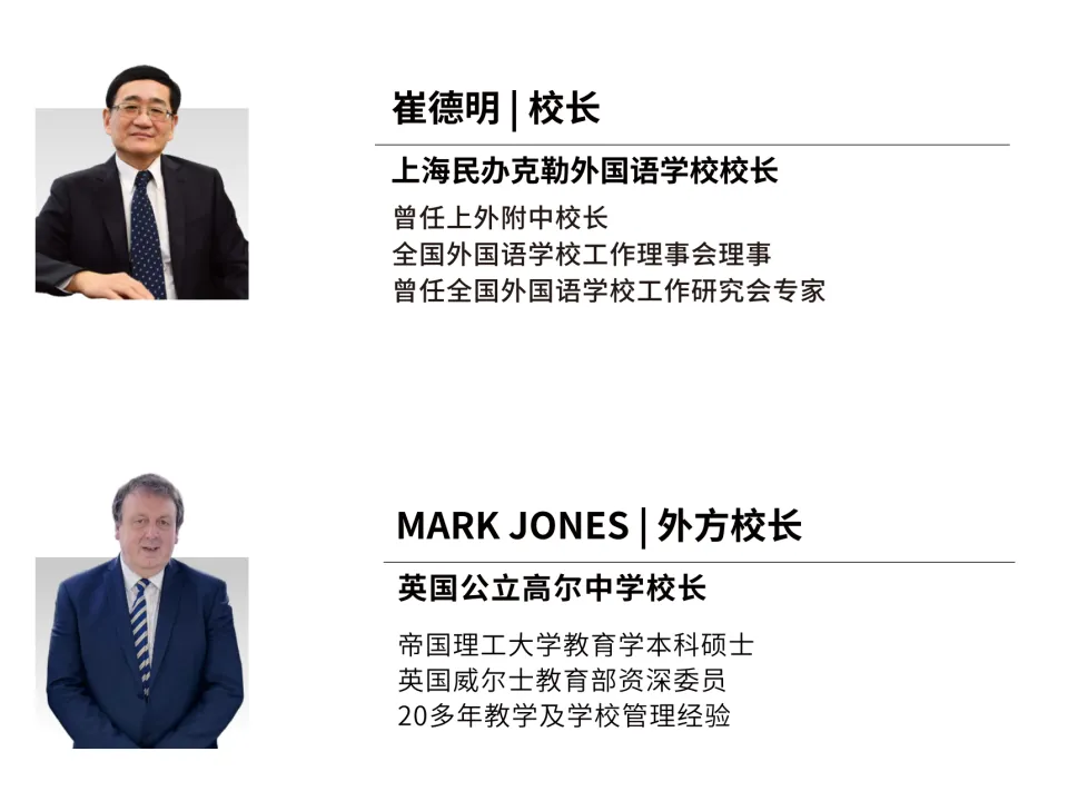 上海民办克勒外国语学校 受邀出席 第二十八届国际教育择校咨询会 2025年12月13日(周六),由国际在线教育频道、名校来了、创世蓝海举办的第二十八届国际教育择校咨询会在上海金茂君悦大酒店二层宴会厅隆重举办! 本次展会汇聚上海【50+】优质教育资源,涵盖上海地区优秀民办国际化学校、国际教育机构及提供国内学籍、专注高考路径的精英学府,构建了涵盖幼儿园至高中,共15年的国内、国际双轨制贯通教育体系,并延伸至国际预科及本科衔接课程,形成"国内升学+海外深造"双通道的完整升学链路。展会现场除各校独家展位外,特别设置择校专区,为家长提供幼升小至国际本科全阶段择校方案,助力适龄学子实现个性化教育路径规划。 ★学校前瞻 ★ 优势一览 上海民办克勒外国语学校 简介 上海民办克勒外国语学校(原上海外国语大学第一实验学校)创建于1994年,是一所以外语、科创为特色的民办学校。学校秉承“自强、至诚、志远”的校训精神,以学生的终身全面发展为重,注重个性化培养,为国内外名校输送了大量毕业生。 上海民办克勒外国语学校国际部位于虹口区西江湾路800号,结合自身传统优势,并引入国内外的优质国际教育资源,在学术综合能力、个性升学规划、特色背景提升、全面素质拓展四大维度打造中西融合的特色A-Level课程,培养拥有全球化视野、批判性思维、创新创意能力的国际复合型人才。 目前,克勒国际部已经获得英国CAIE(授权码CX277)和牛津AQA考试局(授权码96468)授权,是英国IGCSE、A-Level课程官方学习中心和官方授权考点。同时学校也是目前虹口区唯一一所资质齐全的国际高中(民办学校办学许可证编码131010930000028)。 01 招生对象 02 开设课程 学术能力课程,专为克勒学子打造 克勒国际部的学术课程引入英国IGCSE、A-Level课程,融合CAIE、AQA、Edexcel三大考试局课程优势,根据考察方式的差异化,不同学科选择的考试局有所不同,帮助学生更好地在大考中获得高分。 升学规划课程,精准锚定升学方向 入学后配备升学指导课,通过留学课程+职业探索活动+一对一升学指导的形式,助力学生明确申请目标,迈向心仪学府。 背景提升课程,拓宽认知视野 为了进一步提高学生的升学竞争力,克勒国际部开设了一系列背提课程,涵盖科研EPQ、国际竞赛、STEM、商赛、领导力等各个方面,旨在培养学生的学术思维及解决问题能力,助力学生个性化发展。 素质提升课程,培养兴趣与创造力 克勒注重学生的全方面发展,包括艺术、体育、科技等多个领域。学校开设了OM、VEX机器人、模拟联合国等明星社团,并定期带学生参加国内外比赛,旨在培养学生的创造性思维,丰富学生的课余生活,拓宽国际视野。 03 办学优势 精品小班教学 每班5-8人,纯小班制教学,促进个性化成长与高效学习。 老牌名校底蕴 背靠上外系老牌学校,历史底蕴深厚,融合国内外的优质国际教育资源。 英国学籍通道 注册英国高尔中学学籍,拥有1+2、2+2等多样化升学路径。 市区黄金地段 虹口区黄金地段,靠近地铁3、8号线紧邻杨浦区、静安区,走读便利。 04 管理团队&师资力量 管理团队 克勒国际部的管理团队由四位校长组成,他们各司其职、协同发力,以专业能力与国际视野为国际部的发展保驾护航。克勒学校校长崔德明全面统筹国际部发展,英国高尔中学校长Mark Jones深度参与课程设计与教学监管,克勒学校副校长李童馨然与克勒国际部学术校长马建锋则共同承担教学质量与发展方向的全程把控职责。 师资力量 克勒国际部的A-Level教学团队由一群资深教师组成,骨干成员均为国内外名校硕士、博士毕业,有多年国际课程教学经验,培养了众多学生成功进入牛津大学、剑桥大学、伦敦政经、帝国理工学院、伦敦大学学院、曼彻斯特大学、香港大学等各个全球名校学习。 05 携手英国公立高尔中学 2024年5月,克勒和高尔就合作形式、课程体系、教育理念、招生要求等达成一致。高尔校长亲自来到克勒,在实地考察、确认完各项细节后正式签约,联合创办克勒国际部,开设A-Level课程体系,旨在培养拥有全球化视野、批判性思维、创新创意能力的国际复合型人才。 克勒国际部A-level学生入学后注册英国高尔中学学籍,可以选择1+2或2+2学制(第1年/第1和第2年在国内克勒学校就读,后面2年在英国高尔中学就读),享受英国公立高中绿色升学通道。 英国高尔中学概况 高尔中学创立于1825年 全英第一批开设A-Level课程 设有近40门科目,涵盖绝大部分学生的需求; 接受全球国际生就读 教学成果卓越,A-A*比例达76%,90%以上的国际生考入罗素大学集团; 获得剑桥大学授权 开设“HE+”课程,牛剑毕业导师亲授,提供笔面试辅导、参观访校等内容。全英国仅有14所学校获得授权,是教学实力的强有力背书。 克勒国际部A-level学生入学后注册英国高尔中学学籍,可以选择1+2或2+2学制(第1年/第1和第2年在国内克勒学校就读,后面2年在英国高尔中学就读),享受英国公立高中绿色升学通道。 06 精细化管理 作息时间与课表示例 克勒融合高中汇聚了一支国际化、专业化的师资团队,致力于为学生提供高质量的教育和个性化指导。融合高中的课程由经验丰富的外籍教师与中国教师共同授课,确保学生在掌握扎实学术知识的同时,也能提升语言能力和跨文化交流能力。 手机管理制度 良好的行为习惯是人生的重要基石。克勒国际部有