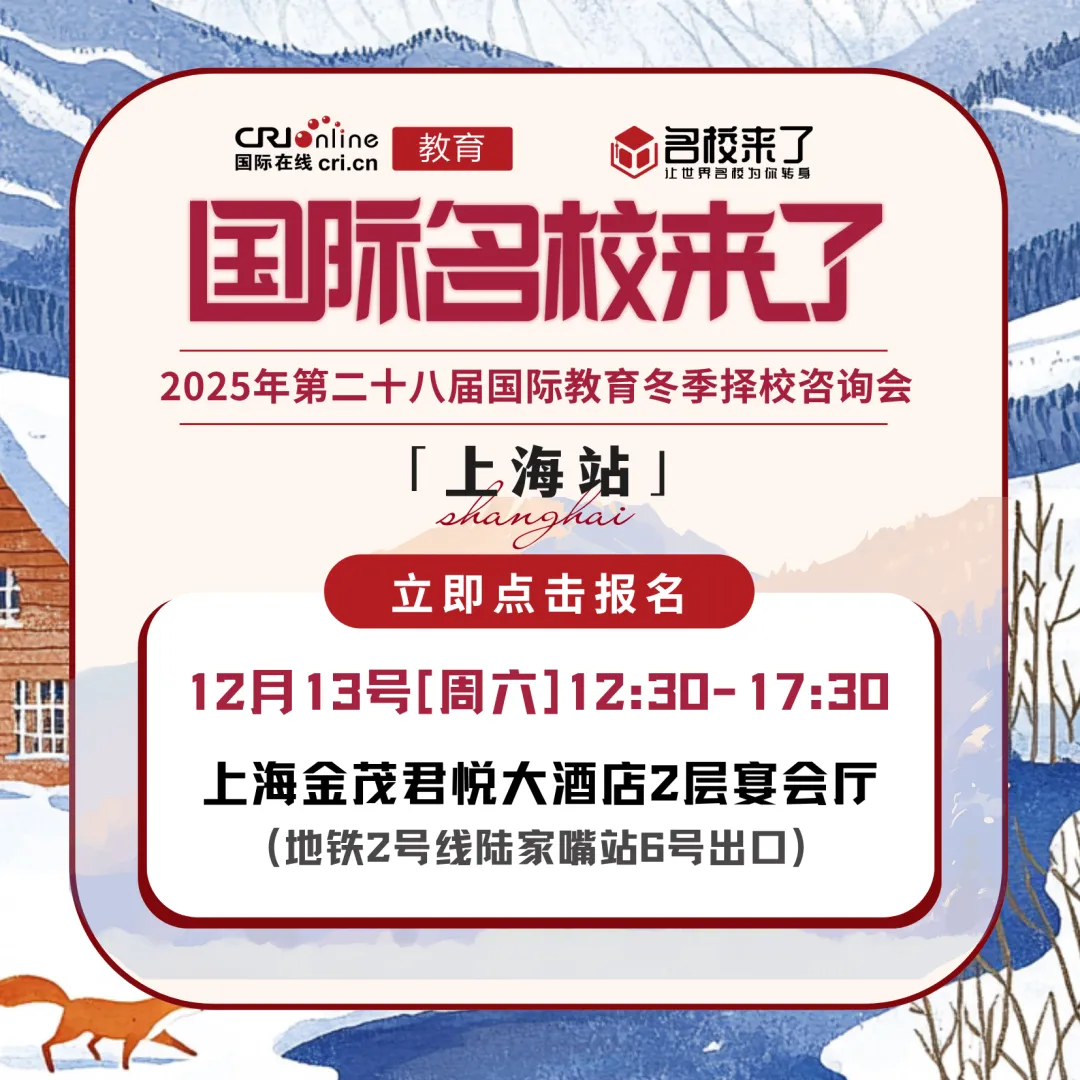 JHS上海常青学校 受邀出席 第二十八届国际教育择校咨询会 2025年12月13日(周六),由国际在线教育频道、名校来了、创世蓝海举办的第二十八届国际教育择校咨询会在上海金茂君悦大酒店二层宴会厅隆重举办! 本次展会汇聚上海【50+】优质教育资源,涵盖上海地区优秀民办国际化学校、国际教育机构及提供国内学籍、专注高考路径的精英学府,构建了涵盖幼儿园至高中,共15年的国内、国际双轨制贯通教育体系,并延伸至国际预科及本科衔接课程,形成"国内升学+海外深造"双通道的完整升学链路。展会现场除各校独家展位外,特别设置择校专区,为家长提供幼升小至国际本科全阶段择校方案,助力适龄学子实现个性化教育路径规划。 ★学校前瞻 ★ 优势一览 JHS上海常青学校 简介 JHS上海常青学校融汇中日教育优势,以培养具有中国情怀与国际视野的复合型人才为使命。学校与多所日本知名艺术院校建立合作,开设有针对性的高中三年全程升学课程,专注帮助学生赴日升读美术与音乐类专业。学生可通过系统学习与专项辅导,从容应对日本留学生考试,目标进入武藏野美术大学、多摩美术大学,京都精华大学以及洗足音乐大学、昭和音乐大学等顶尖艺术类院校,为未来在中日艺术与音乐领域的发展奠定坚实基础。 01 招生对象 10-12年级 02 课程体系 常青日高逻辑 日语学校:50% EJU文理综合/日本艺术课程:35% 提升学生综合能力,更有效的适应社会 日本研学:5% 加强对日本以及对日本大学的了解 03 学校优势 独立校园环境优美。学校的教师团队既有中国教育专家,也有来自日本的资深教师。他们不仅传授知识,更注重培养学生的跨文化理解能力和独立人格。无论是课堂学习还是课外实践,无论是生活指导还是心理疏导,都致力于为学生的成长保驾护航。 04 特色课程 职业生涯规划课程 力邀请100+位有留日背景并活跃在各行各业的精英分享自己的职业生涯 日式文化体验 讲解日本礼仪文化、体验茶道、寿司制作以及和服穿搭文化等 家长沙龙 每月固定一次家长沙龙 设定主题邀约嘉宾参加私享会 双师讲堂 日本文化讲座,纯日式教学,规划个人升学路线(一人一规划)。 美术方面 开设workshop等专项课程; 音乐方面 个人一对一专项课程 05 学校位置 上海市浦东新区川沙路1058号 06 校园掠影 07 奖学金设置 N1合格 3万日元 全勤奖一学期无请假旷课早退 2万日元 全勤奖三年无请假旷课早退 20万日元 名校合格助学金 30万日元 08 日常家长关注问题 校车情况(是否有校车):是 授课方式:小班制教学,每班严格控制在 20人,双班主任全程协同管理,从课堂学习到生活关怀,全方位守护孩子成长。师生比1:5,从课堂到作业中的细微困惑,都能被及时捕捉。 学校性质:民办学校 留学国家:日本 江浙沪展会合作: 彩丽老师手机号微信18701366816 end 让世界名校为你转身 名校来了 为了帮助广大有意转轨国际化教育、尝试双轨制教育的家庭提供更好的择校规划,一站式解决择校难题,上海第二十八届国际名校来了多元化升学择校咨询会将于12月13号[周六]在上海金茂君悦大酒店2层宴会厅举办。现场邀请上海50多所优质国际化学校、双轨制学校的校长/招生官与家长面对面沟通,数十位校长大咖和择校专家发表演讲,还有多位不同领域的升学规划专家为家长一对一答疑,欢迎点击下方链接预约报名! 近期展会详情 点击下方图片 立即预约择校展名额