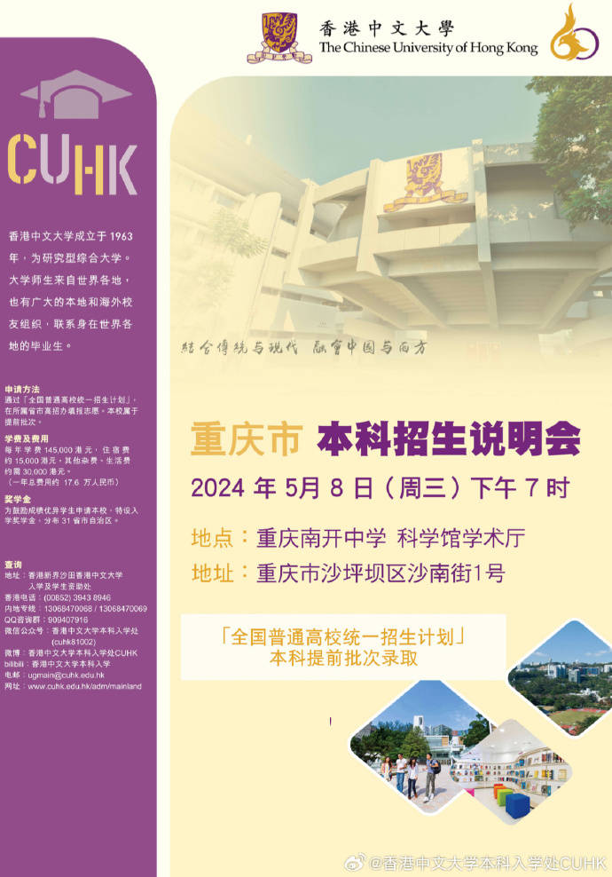 香港中文大学河南线下招生宣讲会活动安排(5月7日)