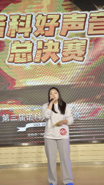 本次好声音比赛对我最大的感受是在面对舞台时从容了很多,也能感受到自己的进步。我第一次参加好声音是我刚进诺科的时候,唱歌一直是我的爱好,但是每当站到舞台上时我就变得很紧张,声音颤抖,所以在第一届的诺科比赛我没能进决赛。参加第三届比赛是因为马上毕业了,想再试试看,不想留下遗憾。
