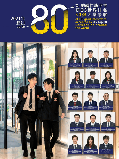 在辅仁2022届毕业生中,有92.4%学生获QS50强大学录取,更有28.3%的学生获新加坡国立大学/南洋理工大学的无条件录取,其中还有3位同学获得新加坡本科的全额奖学金。