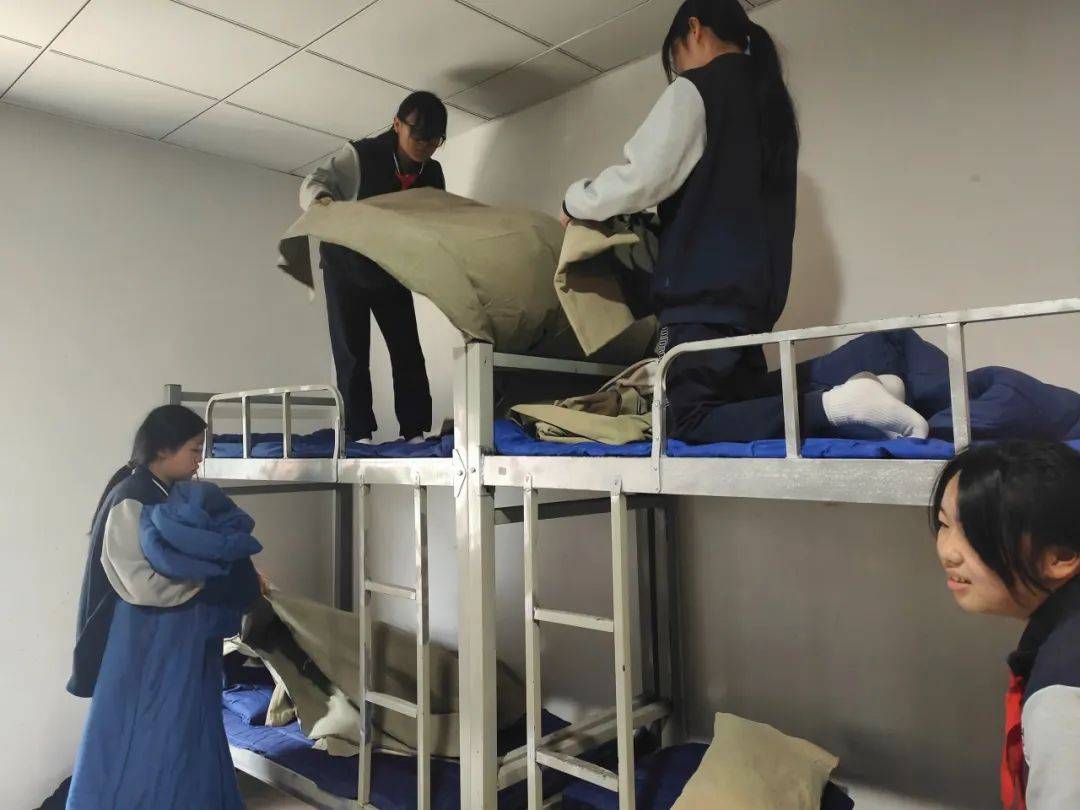 开营仪式后,同学们积极投身到实践中。内务整理中,同学们认真细致,从床铺整理到物品摆放,协同配合,在内务评比中,纷纷获得佳绩。