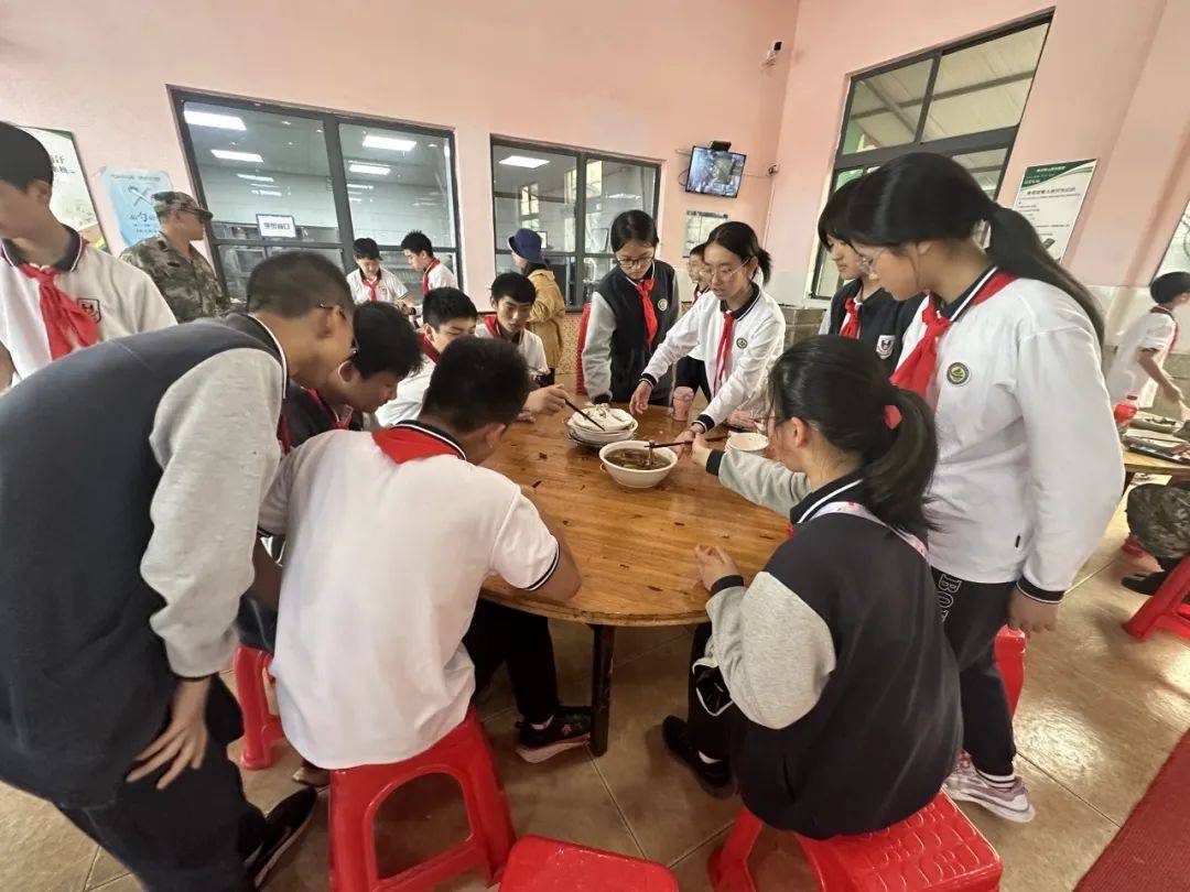 第一天下午的田间劳作包括锄草、翻地、开渠、插秧等。在听取了教官耐心细致的理论讲解后,同学们挽起衣裤,走向田间,杂草丛生的玉米田被一双双小手打理得生机勃勃;手脚协力,挥动铁锹,虽显吃力,却井然有序,同学们将沟渠挖得整齐有序。田里的泥水溅到衣服和脸上,但无法改变孩子们插秧时的专注。晚饭时,孩子们谁也不挑食,吃得津津有味,劳动后吃下的饭菜特备香。