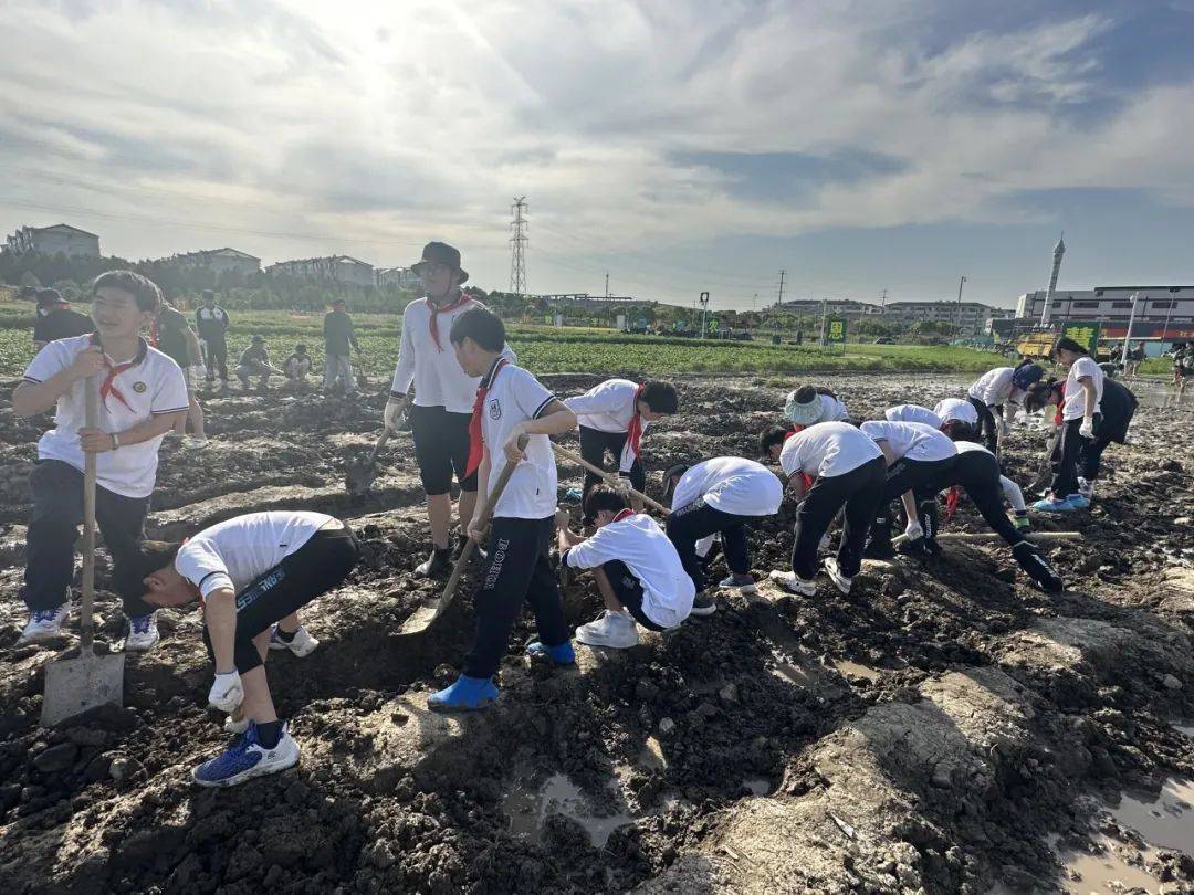 稻田里听蛙声阵阵,黎明中听晨鸡报晓,田园风光怡人处,见博华学子意气风发,躬身实践。