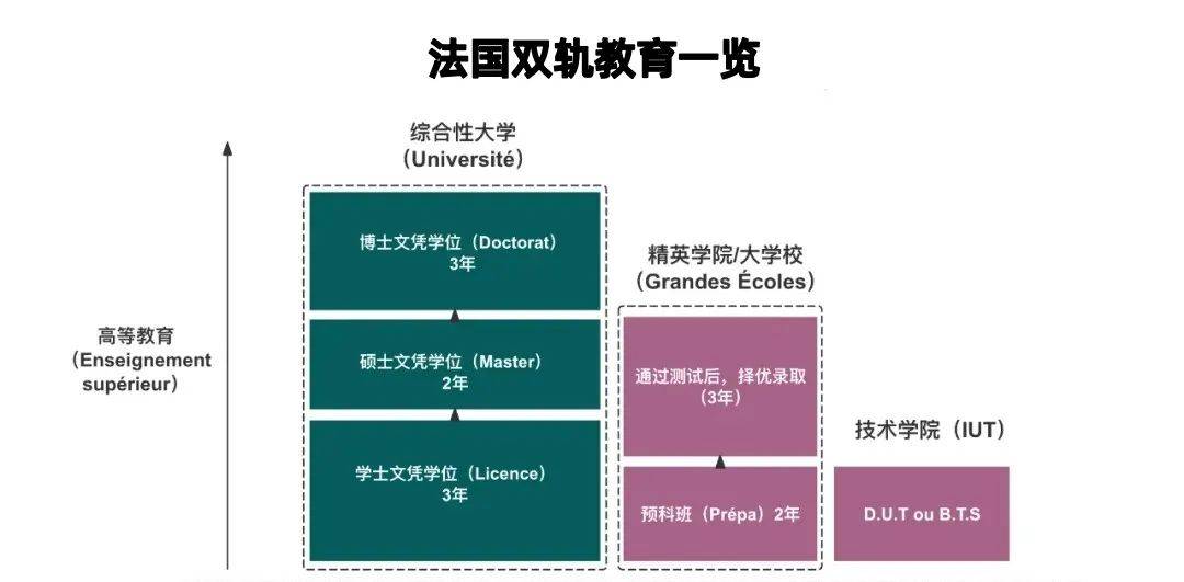迄今为止,法国的教育依然保留“双规”制度,一轨是面向大众的普通教育,一轨是要求较高的精英教育。随着时代的发展,法国的教育也演变出不同于其他国家不同的高等教育体系。