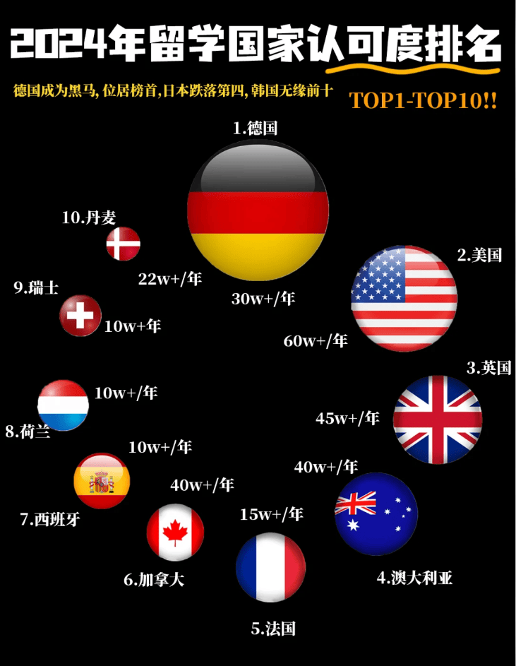 专注于出国留学信息的国际知名教育网站educations.com在上半年,更新了2024全球五大留学国家排名榜单。